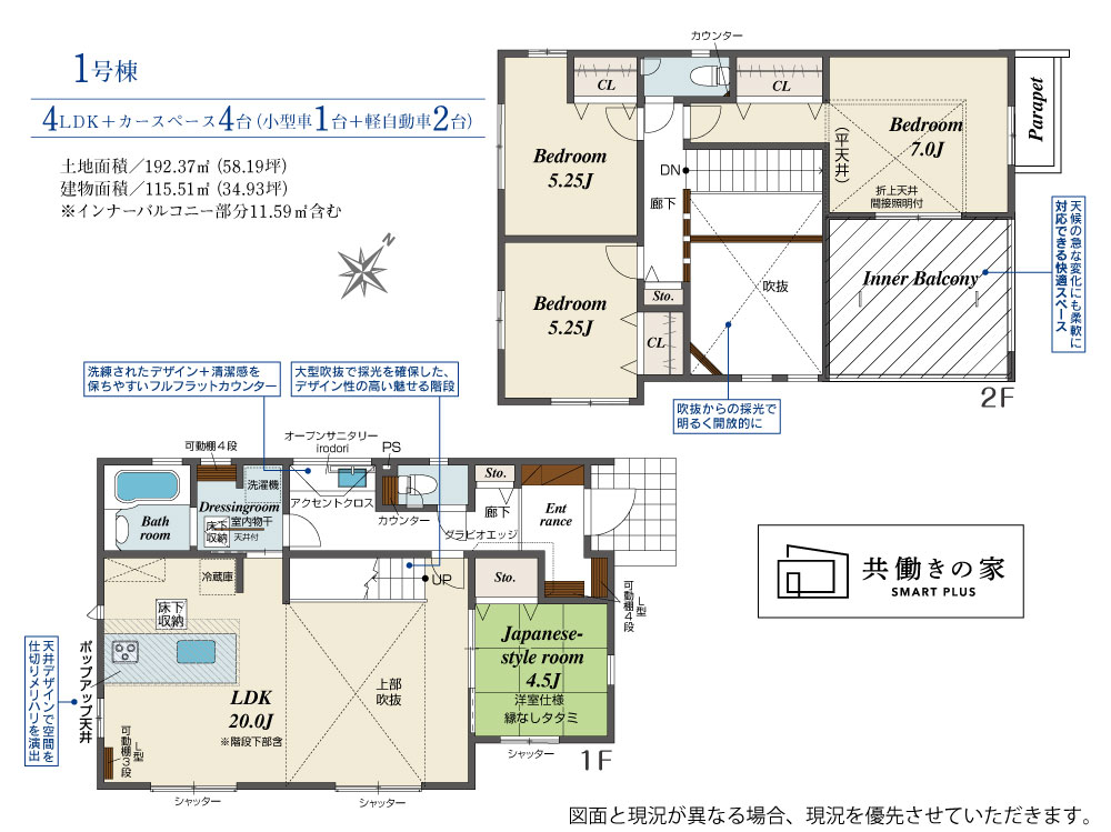 | 建物面積 | 115.51m2(約34.94坪) | 土地面積 | 192.37m2(約58.19坪) |