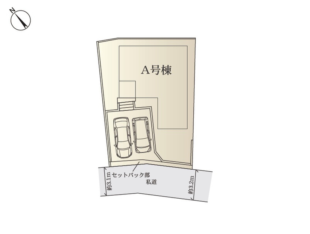 | 駐車場 | 1台 ~ 2台 | 道路の幅員 | 南西側約3.1m~3.2m私道(セットバック4.11m2含む) |