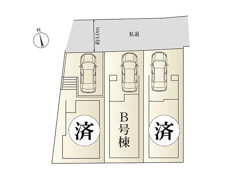 | 駐車場 | 1台 | 道路の幅員 | 北側約4.0m |
