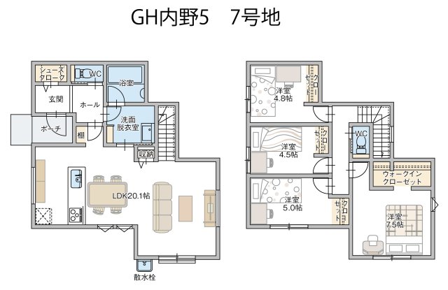 - ※完成予想図やCG合成画像は、門塀・植栽・庭・外観等、実際とは多少異なる場合があります。