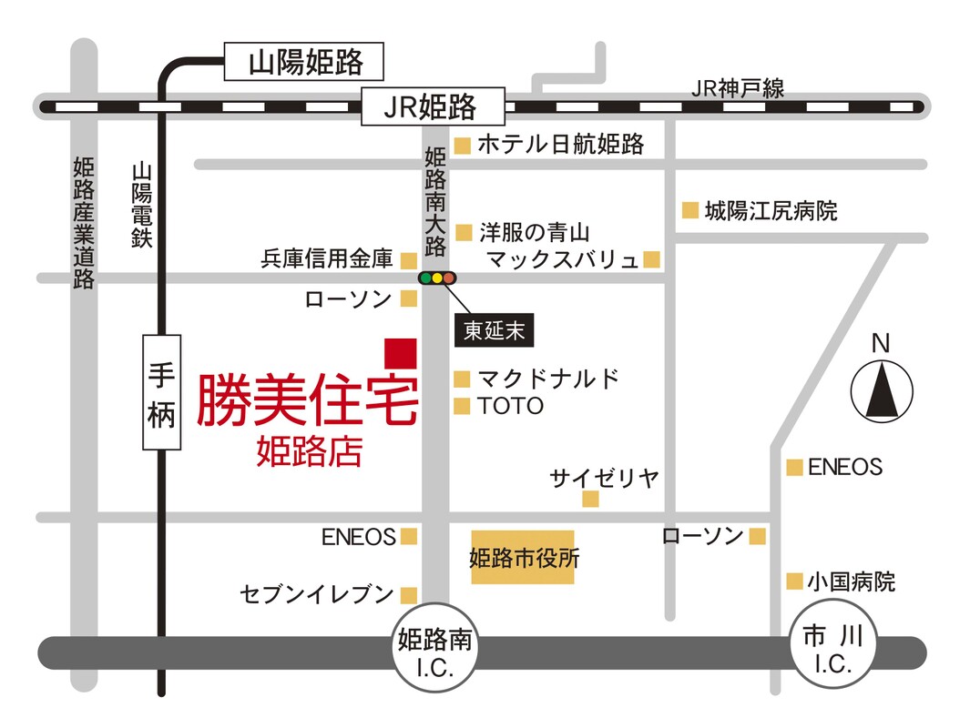 魅力3 勝美住宅姫路店はJR姫路駅徒歩7分。南大通り沿い。大型駐車場完備。
