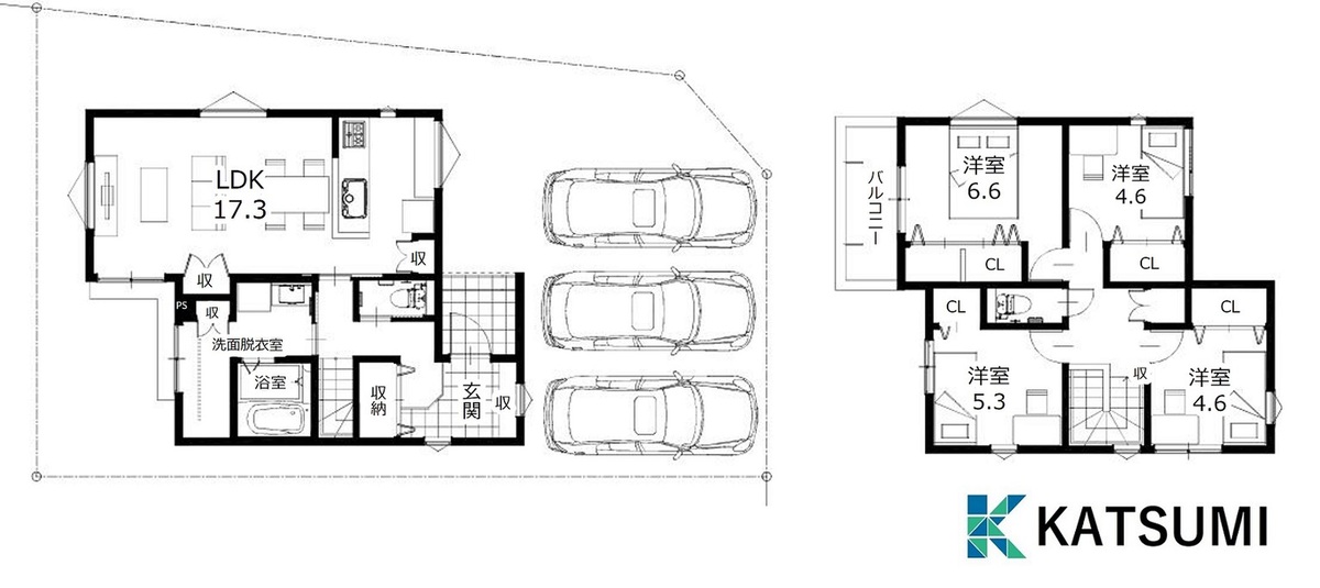 | 建物面積 | 98.10m2(約29.67坪)・103.13m2(約31.19坪) | 土地面積 | 150.83m2(45.62坪)・153.8m2(46.52坪) |
