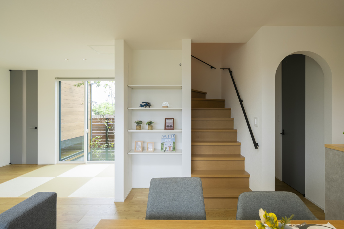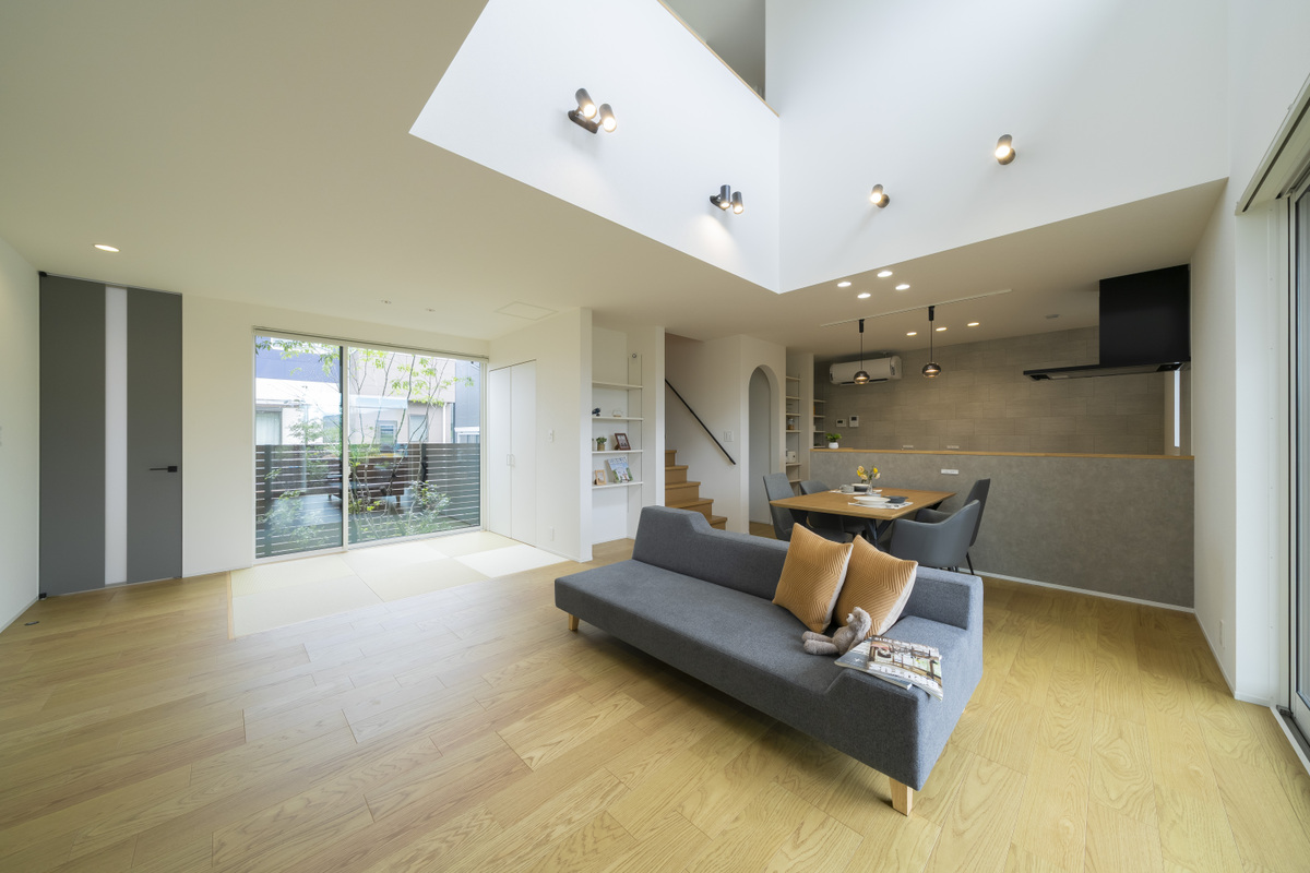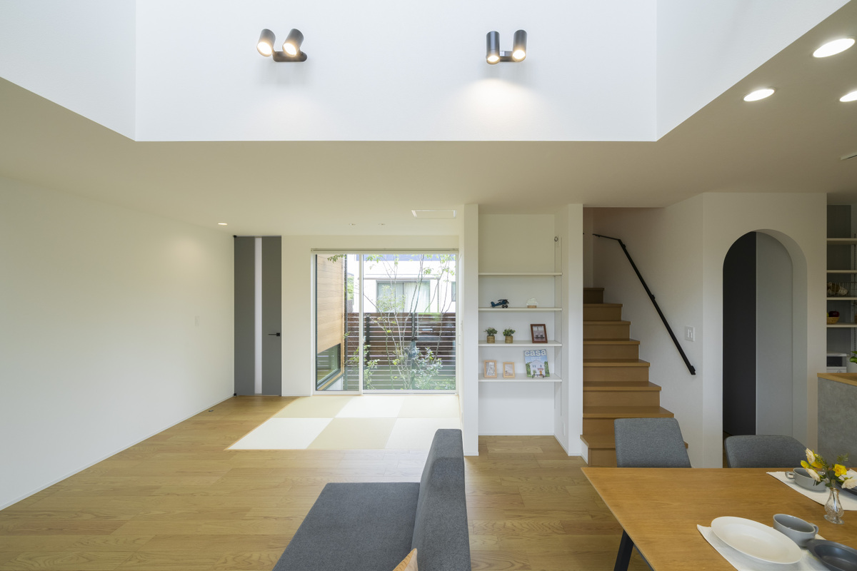 【素材感と街並みが調和する”つながり”のある住まい】視線がスムーズに抜ける開放的な空間設計