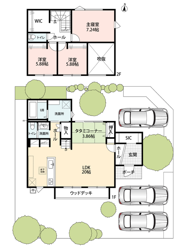 - ※完成予想図やCG合成画像は、門塀・植栽・庭・外観等、実際とは多少異なる場合があります。
