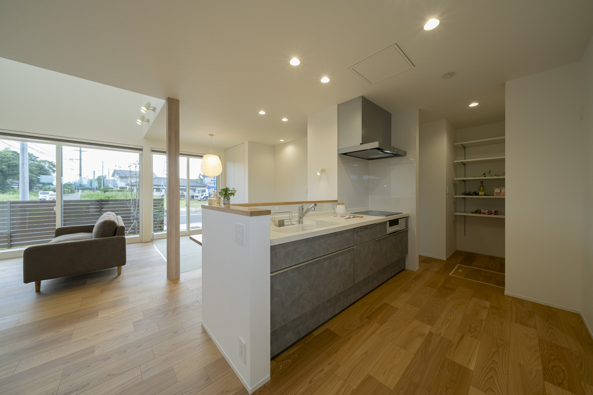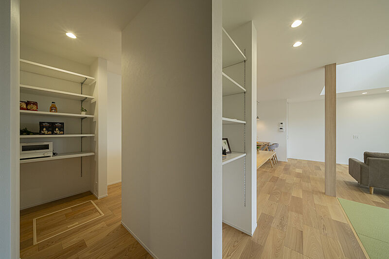 【木の調和と無駄なく美しい動線 モダンで心地よい住まい】家事のストレスを軽減する回遊動線