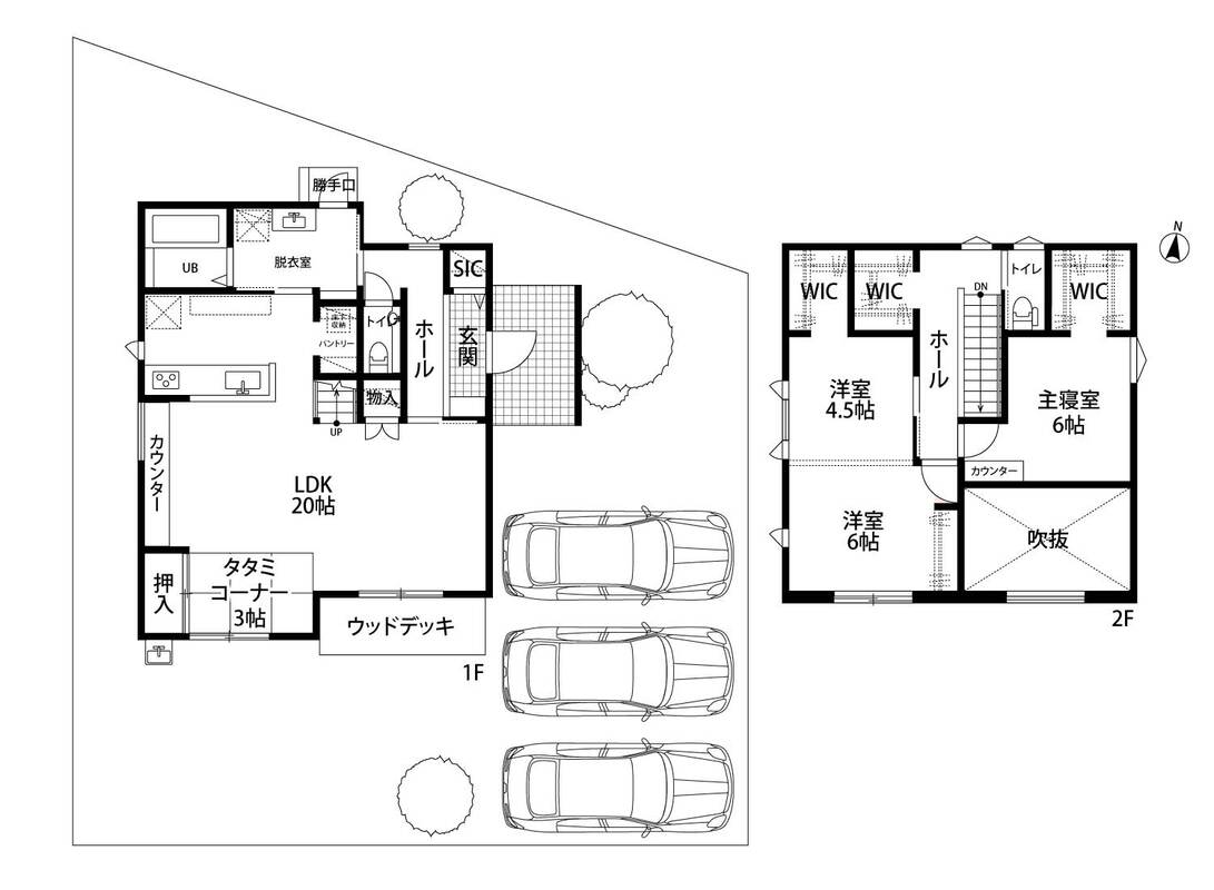 | 駐車場 | 3台 | 道路の幅員 | 道路幅員:6m、9m |