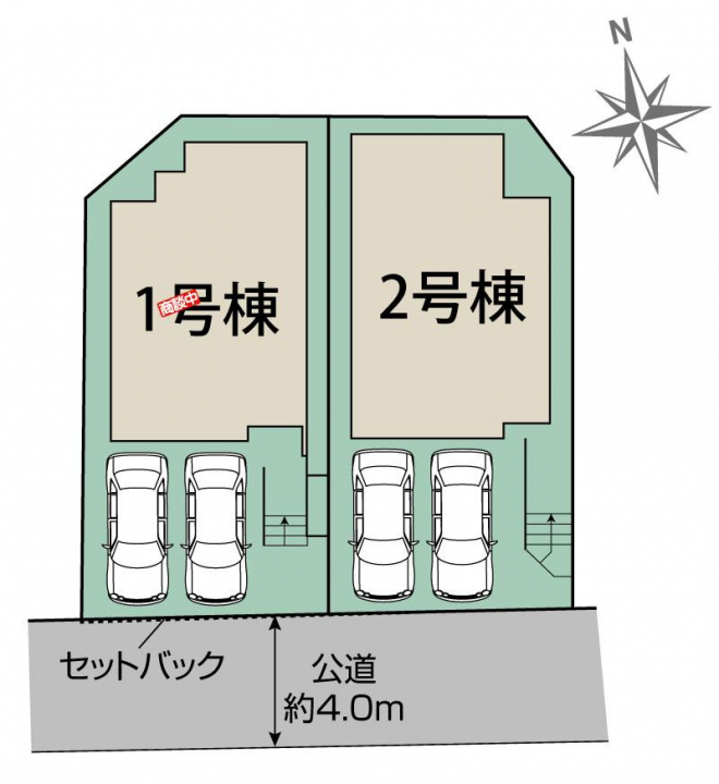 | 駐車場 | 2台 | 道路の幅員 | 南4.0m公道 |