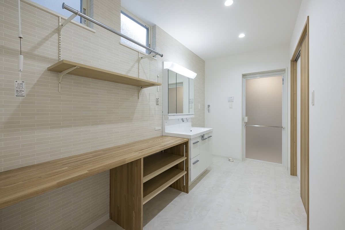水回り集約で家事効率UP!玄関~水回り~LDKが回遊でき、帰宅時の手洗い動線良好です。室内物干やワイドカウンターを備え家事ピットとして機能的なスペースです。