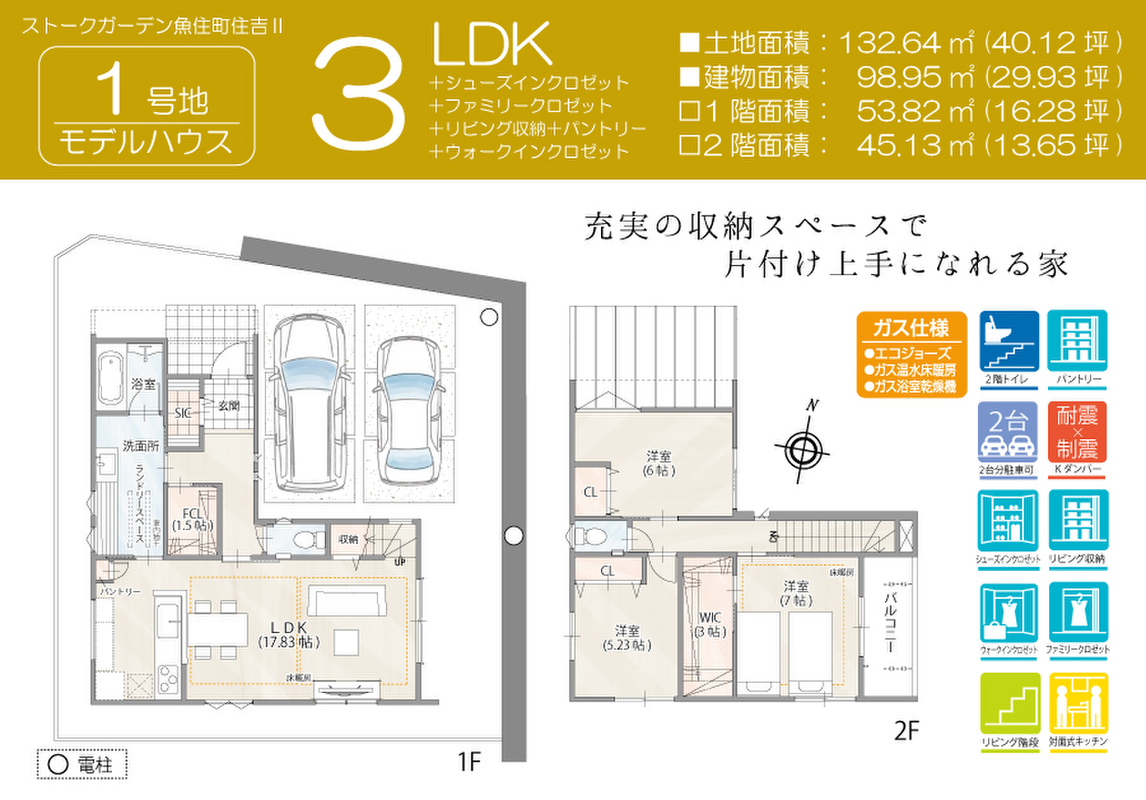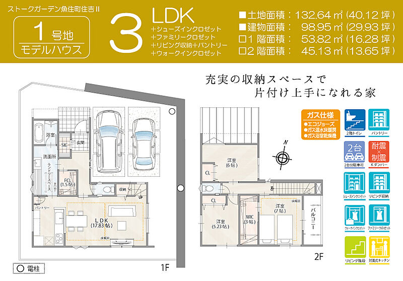 魅力2 WIC含む全居室収納付きでお部屋スッキリ。ランドリールームで洗濯物が完結します。
