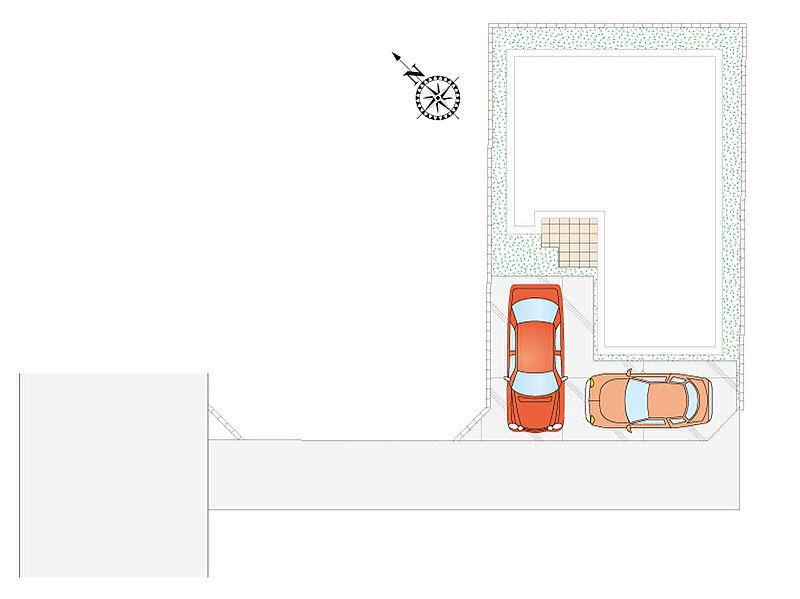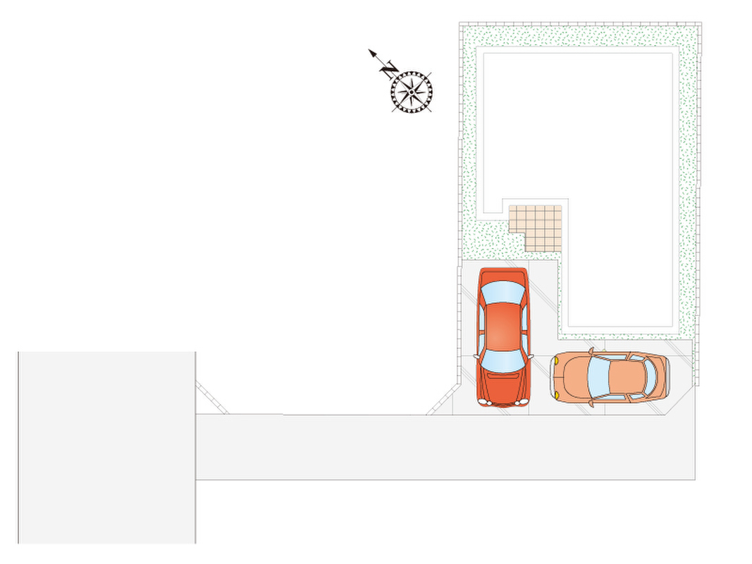 | 駐車場 | 1台 ~ 2台(※車種による) | 道路の幅員 | 北西側:5.7m |