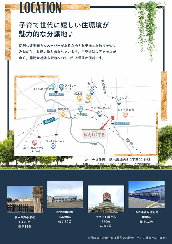 【ファイブイズホーム】□栃木第四小学校 徒歩13分■栃木南中学校 徒歩15分□ファミリーマート 徒歩5分■ヤオハン 徒歩6分□制振装置 Kダンパー搭載