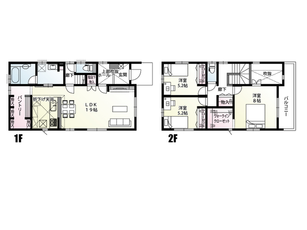 | 建物面積 | 98.46m2(29.78坪)・104.33m2(31.55坪) | 土地面積 | 115.76m2(35.01坪)・143.61m2(43.44坪) |