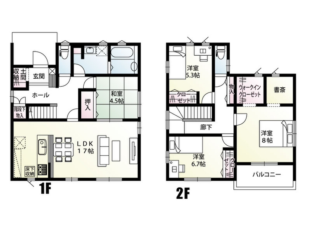 17号棟 間取図 間取り 5LDK 価格 2830万円 建物面積 114.20m2(34.54坪) 土地面積 302.13m2(91.39坪) -