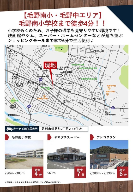 新築一戸建て <足利市常見町2期>小学校まで徒歩4分、スーパー・コンビニも徒歩圏内と生活環境充実の立地