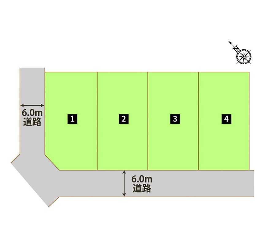 | 駐車場 | 4台 | 道路の幅員 | 2号棟:(西 公道 6.0m 間口 11.8m) |