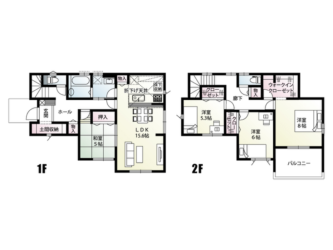 - 間取り 【1階キッチン:3口コンロキッチン】 価格 2980万円 建物面積 111.22m2(33.64坪) 土地面積 161.83m2(48.95坪) -