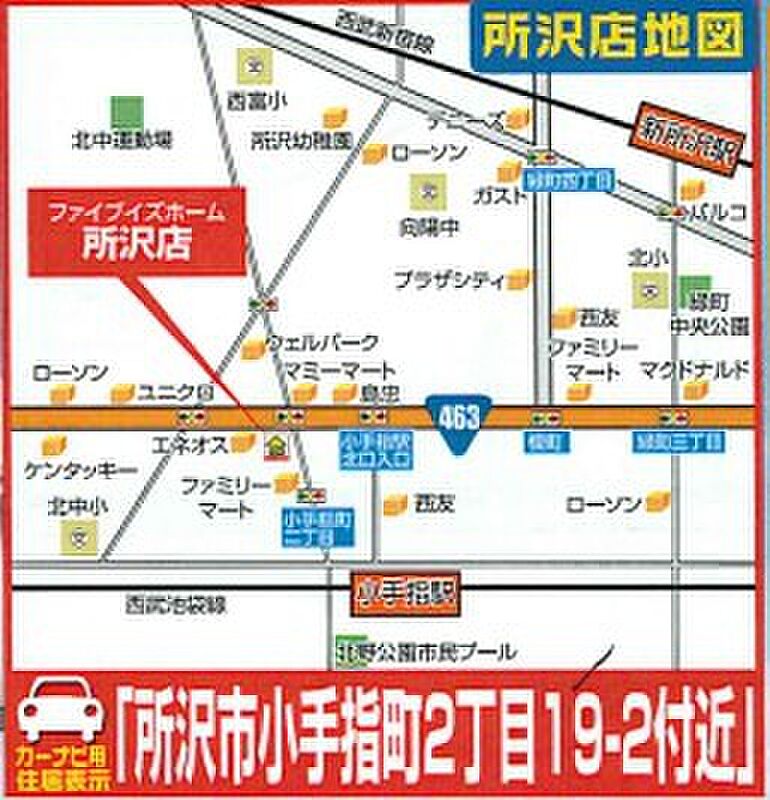 西武池袋線「小手指」駅 徒歩15分 西武新宿線「新所沢」駅 徒歩15分 西武池袋線「西所沢」駅 徒歩19分 |