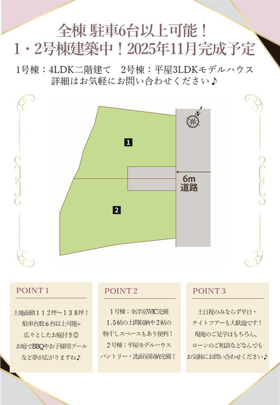 ■山前小学校まで徒歩7分■広々とした112坪~138坪の敷地 ■駐車6台以上可能+大きなお庭付き■ご予約はお気軽にお問い合わせください!