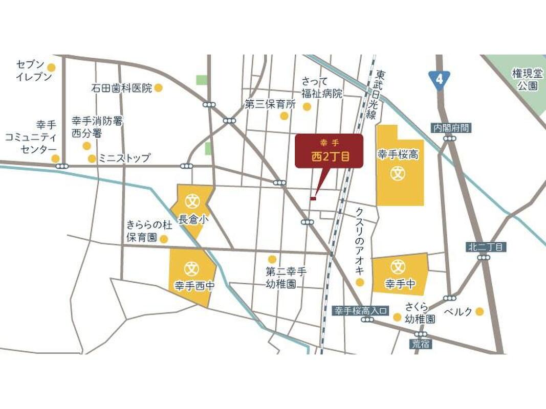 新築一戸建て <幸手市西2丁目2号棟>小・中学校や幼稚園が徒歩圏内に揃う、子育て家族に嬉しい立地
