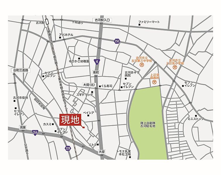 湘南新宿ライン宇須「古河」駅 徒歩22分~23分 東武日光線「新古河」駅 徒歩49分 |