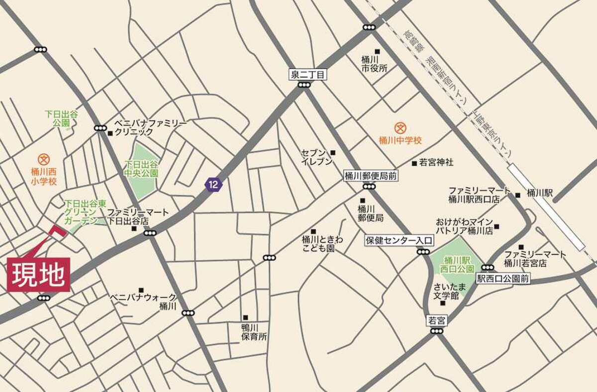JR高崎線「桶川」駅 市内循環バス西20「下日出谷中央公園前」 徒歩6分~8分 |