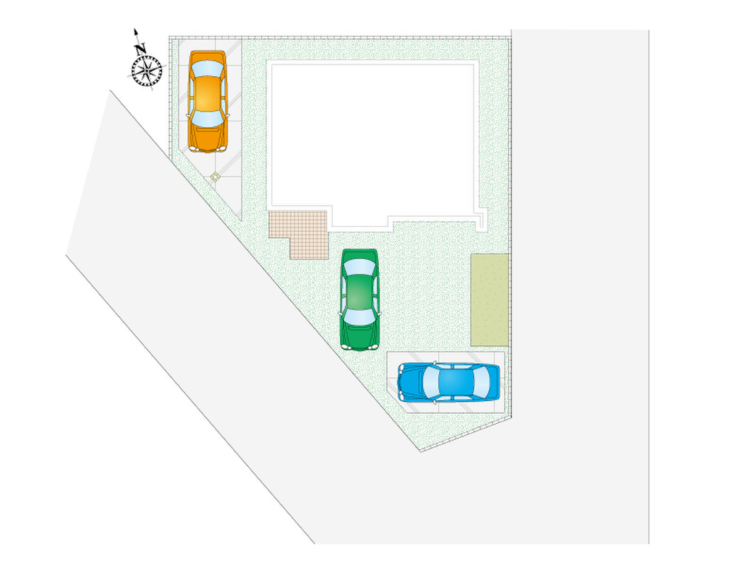 | 駐車場 | 3台 | 道路の幅員 | 南西側6.0m・東側6.0m |