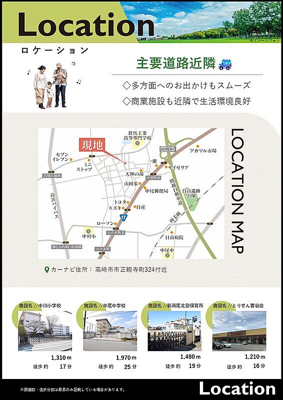 JR上越線「井野」駅 徒歩27分 JR両毛線「新前橋」駅 徒歩40分 JR上越線「高崎問屋町」駅 徒歩44分 |