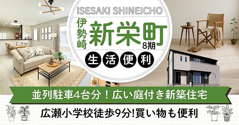 新築一戸建て <伊勢崎市新栄町>小学校まで徒歩9分、買い物施設も徒歩圏内に揃う便利な立地