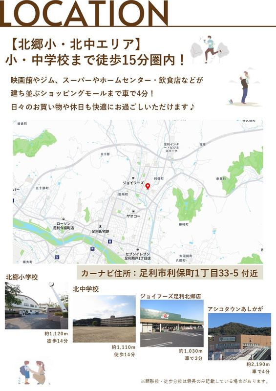 新築一戸建て <足利市利保町7期>買い物施設や小・中学校が徒歩圏内に揃う生活環境の整った立地