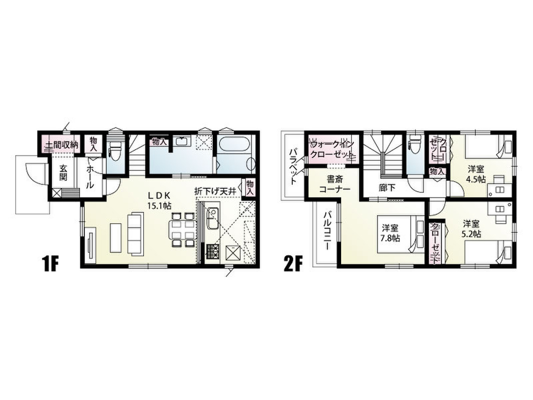 - ※完成予想図やCG合成画像は、門塀・植栽・庭・外観等、実際とは多少異なる場合があります。
