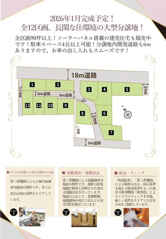 魅力1 全区画90坪以上!陽当り良好で閑静な全12区画の分譲地です!