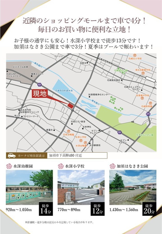 新築一戸建て <加須市下高柳>ショッピングモールまで車で約4分、小学校も徒歩圏内の便利な環境