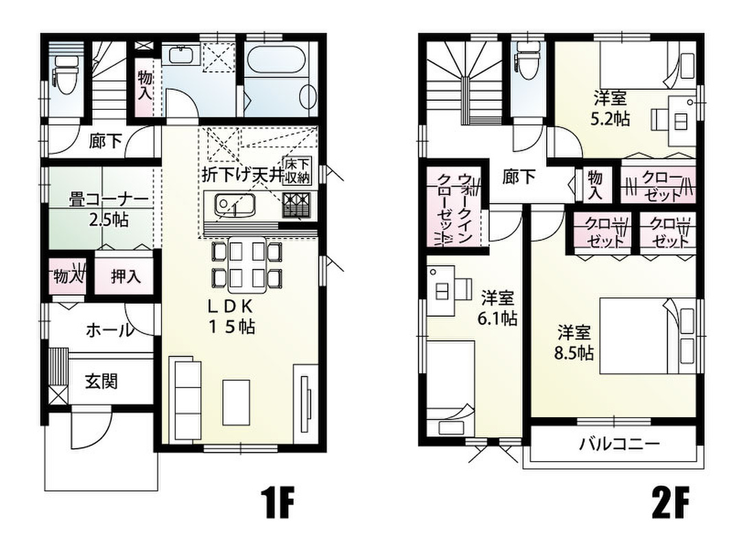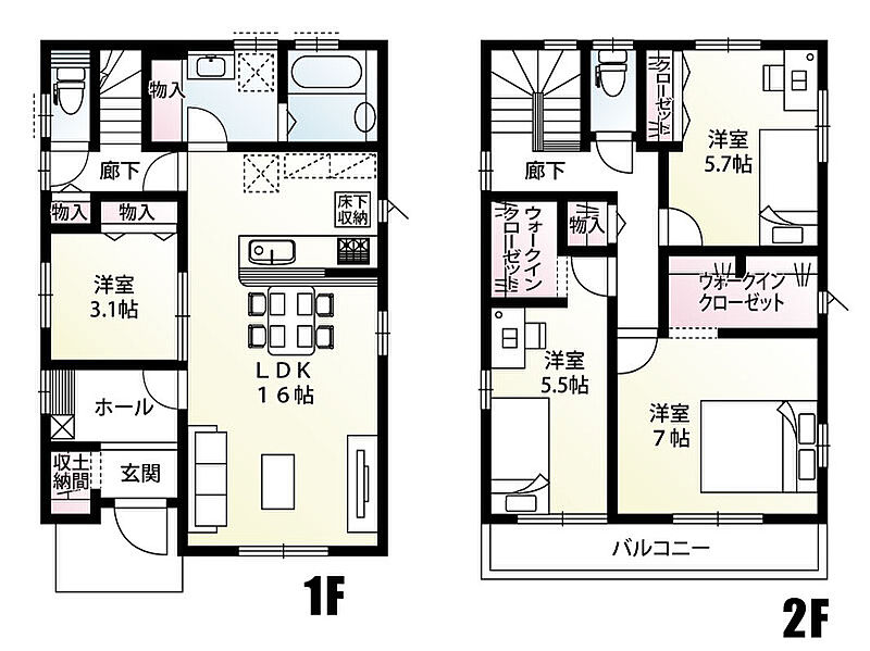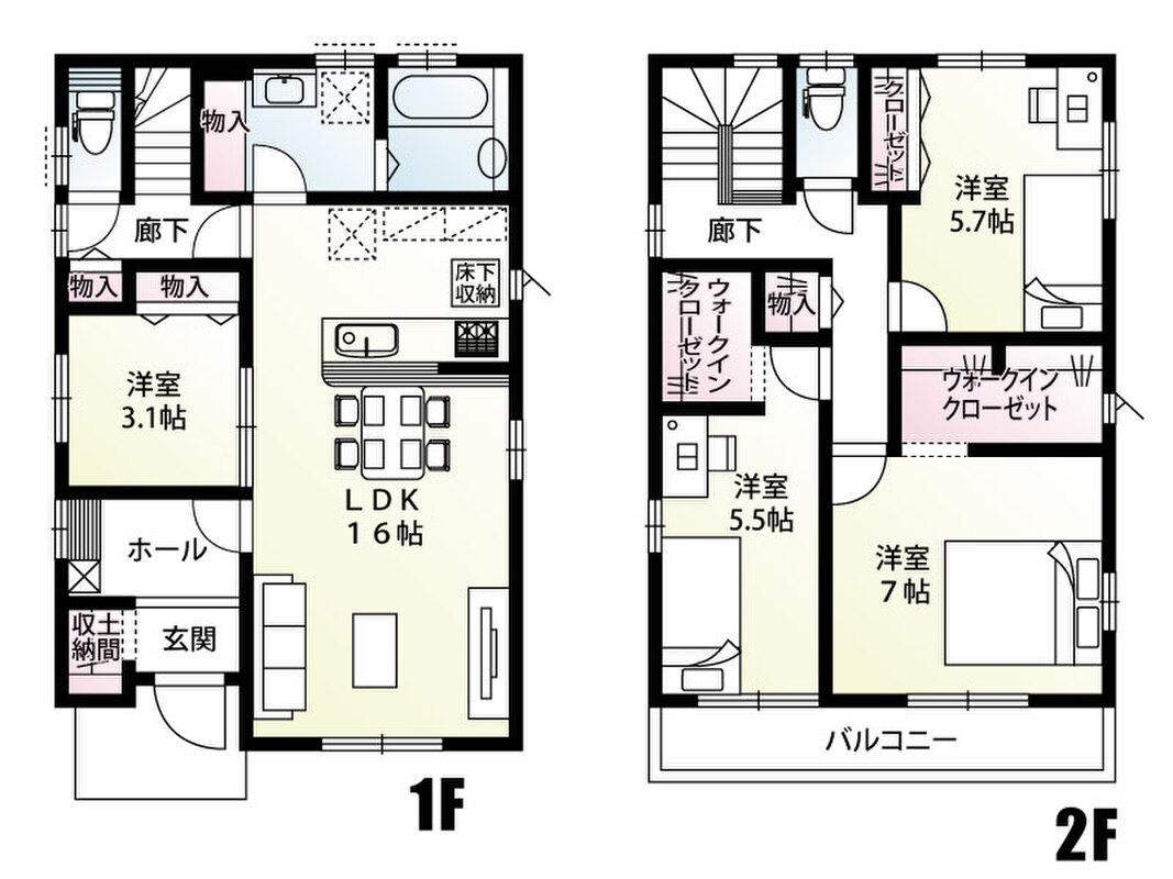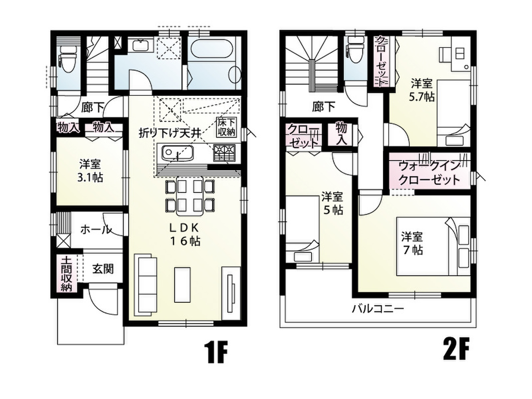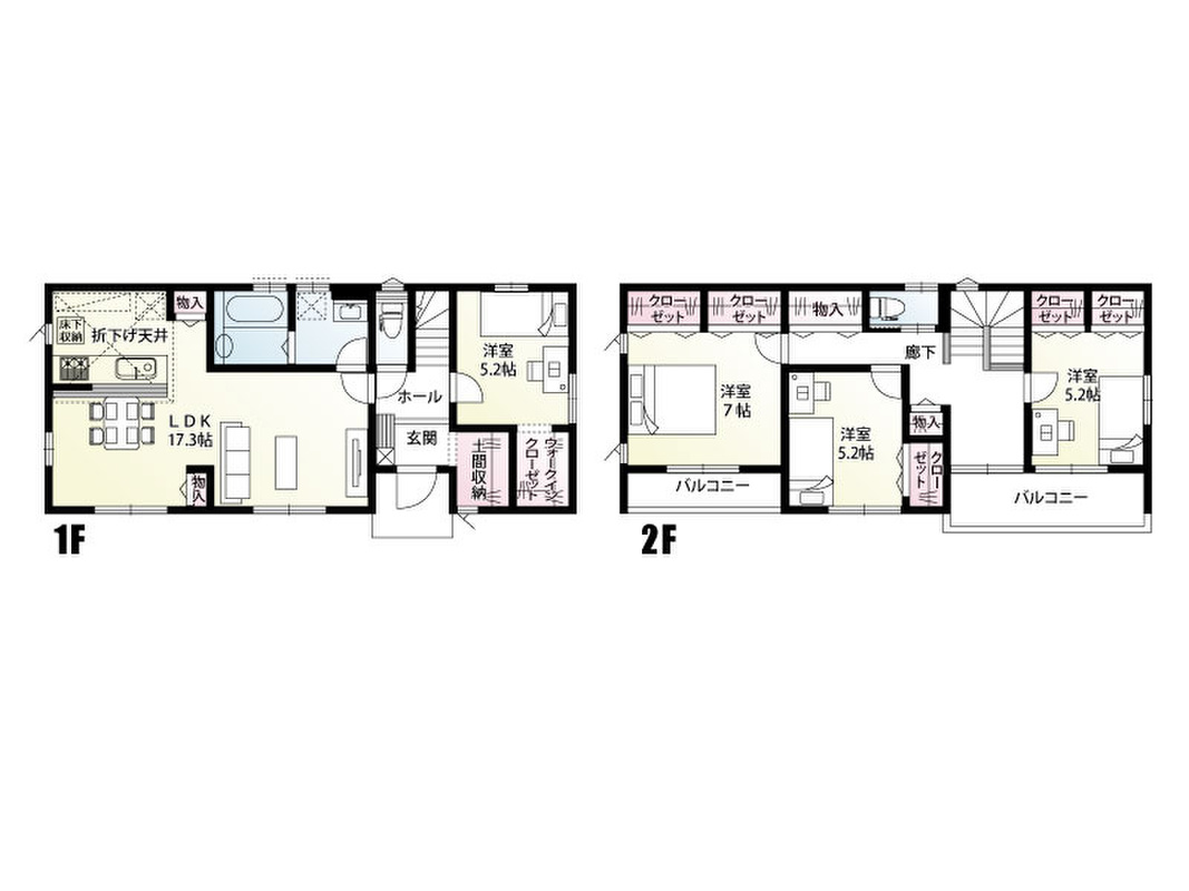 1号棟:■和室なし4LDK、土間収納、各居室に収納あり