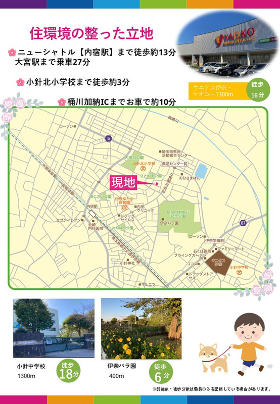 新築一戸建て <伊奈町内宿台5丁目>小学校まで徒歩4分、駅まで徒歩13分の通勤・通学に便利な立地