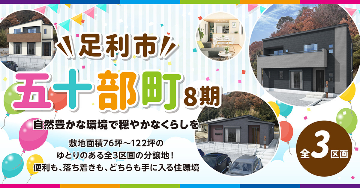新築一戸建て <足利市五十部町8期>小・中学校まで徒歩15分圏内の自然豊かで穏やかな住環境