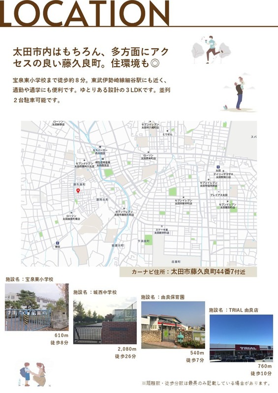 東武伊勢崎線「細谷」駅 徒歩14分 東武伊勢崎線「太田」駅 徒歩38分 東武桐生線「三枚橋」駅 徒歩38分 |