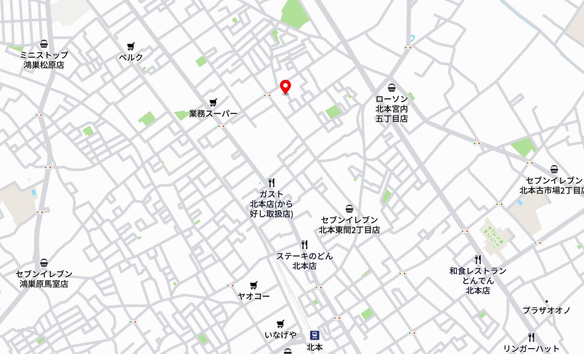 JR高崎線「北本」駅 丸建バス 3分 東間5丁目 バス停 徒歩9分~10分 |