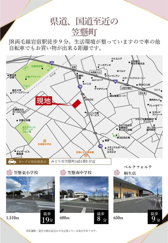 新築一戸建て <みどり市笠懸町阿左美1期>県道・国道至近、JR岩宿駅徒歩9分と交通アクセス良好な立地