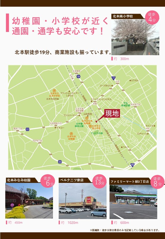 駅徒歩17分の分譲地です。南小学校(300m)徒歩4分、北本中学校(1700m)徒歩22分、コンビニ・病院も徒歩10分圏内に揃っているので便利にお住まい頂けます。