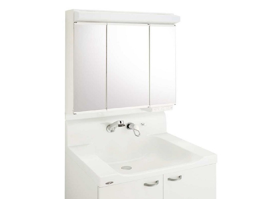 鏡裏収納付きのスッキリとした使いやすい洗面台を設置しました。