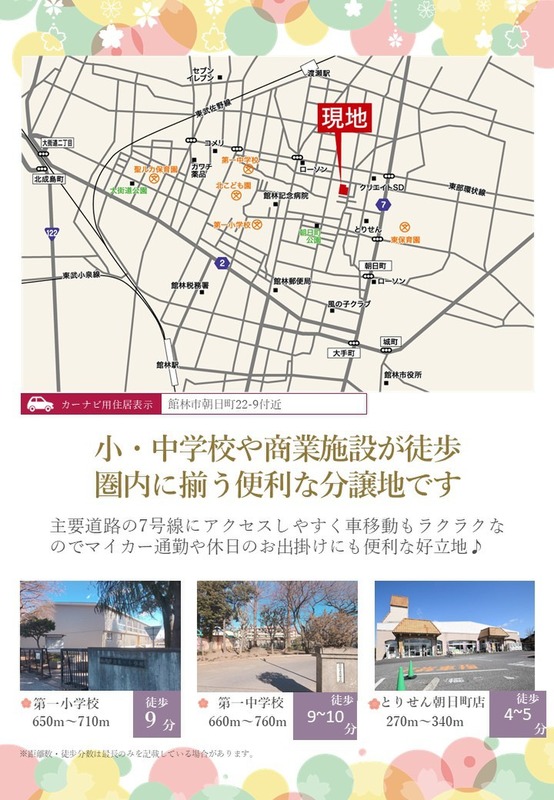 東武佐野線「渡瀬」駅 徒歩16分 東武伊勢崎線「館林」駅 徒歩24分~25分 |
