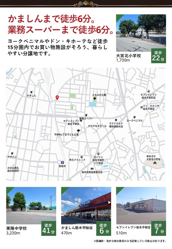 【ファイブイズホーム】■東武日光線「新栃木」駅 徒歩12分■業務スーパー 栃木店まで徒歩6分■ヨークベニマル栃木平柳店まで徒歩13分■セブンイレブンまで徒歩7分■駐車スペース4台分■