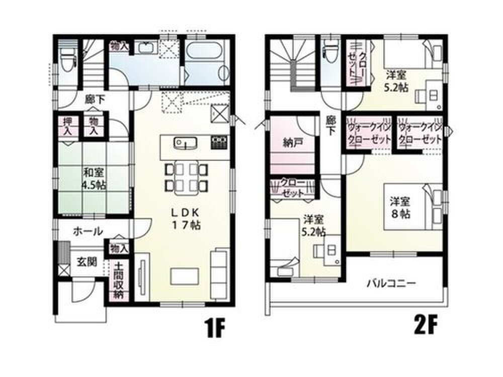 1号棟 間取り 4LDK+1S(納戸) 価格 2398万円 建物面積 109.80m2(33.21坪) 土地面積 197.83m2(59.84坪) -