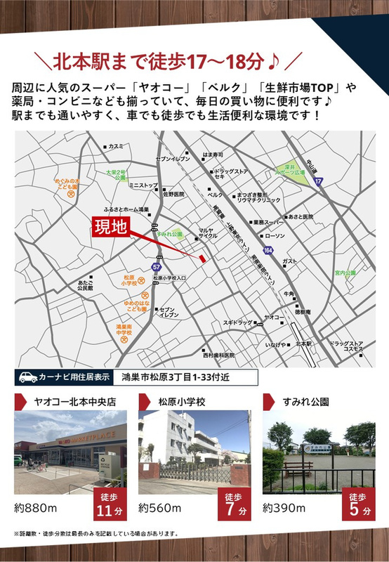 新築一戸建て <鴻巣市松原3丁目>小・中学校や買い物施設が徒歩圏内に揃う暮らしに便利な住環境