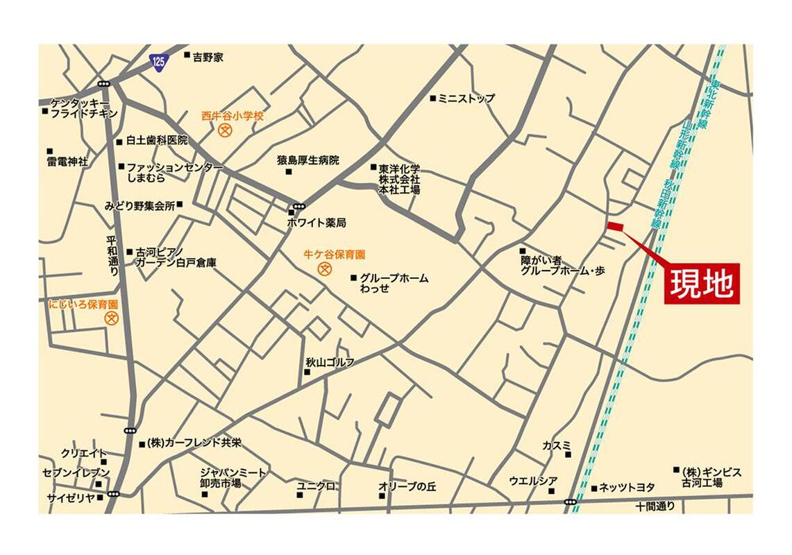 - ※地図、航空写真情報および地形ならびに周辺のお店・施設は、必ずしも現況を表すものではありません。