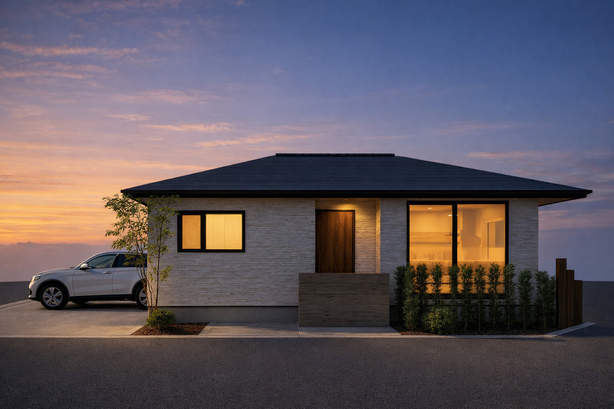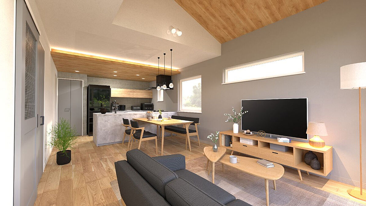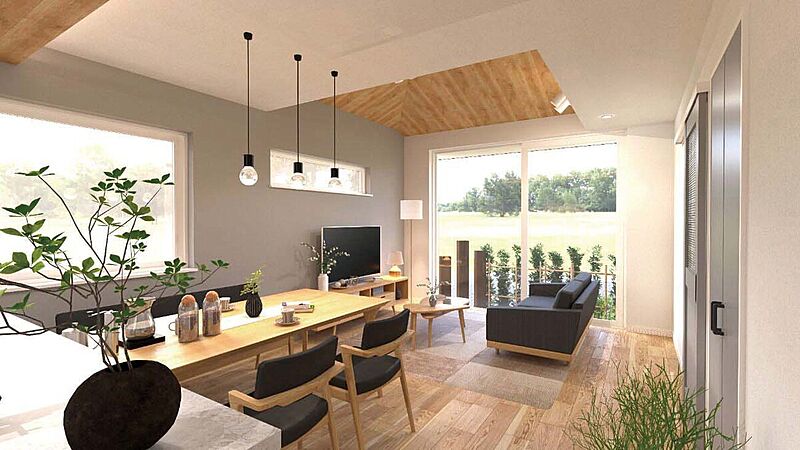 勾配天井×木目デザインで、開放感と上質さを両立!デザインも性能もコスパも満足な平屋です。