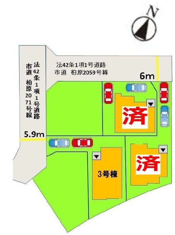| 駐車場 | お車2台駐車可能♪ | 道路の幅員 | 道路幅5.9m~6.0m アスファルト舗装 |