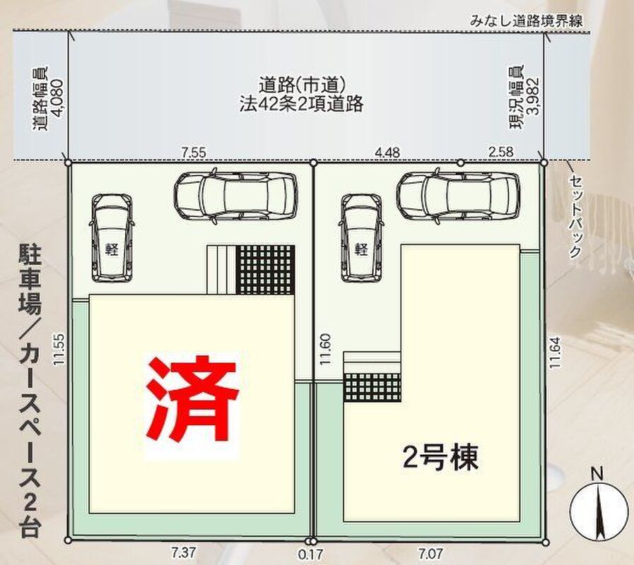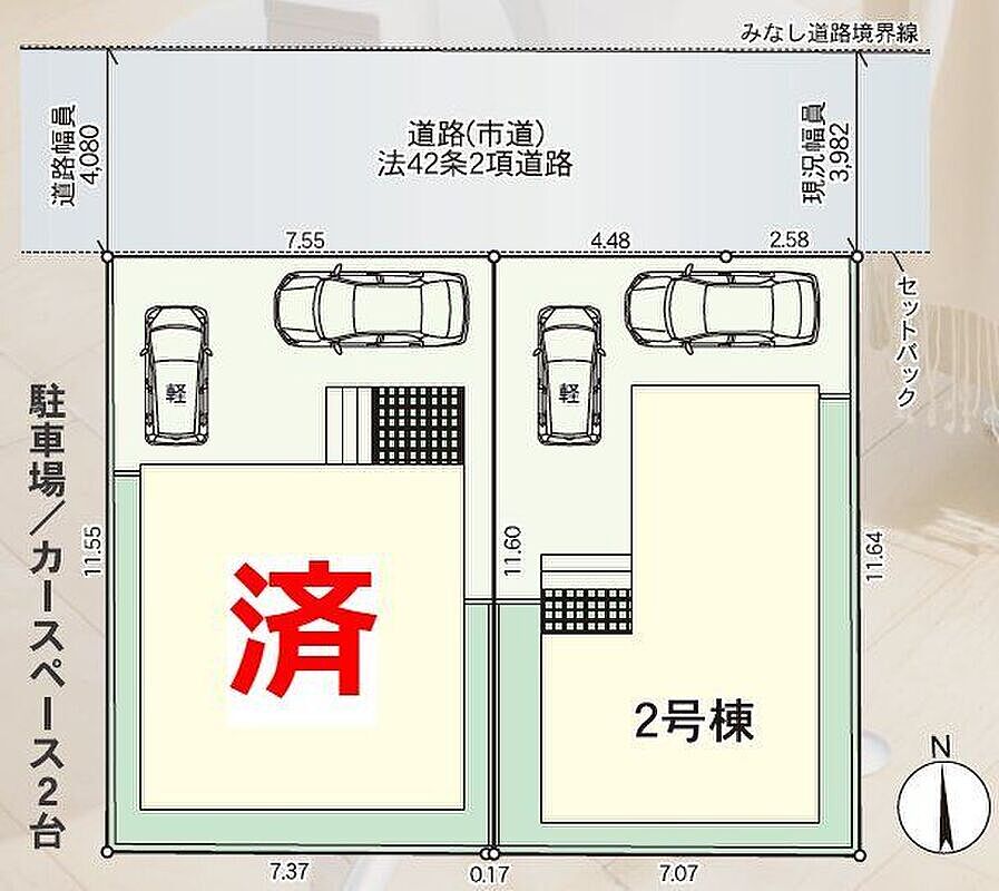 | 駐車場 | - | 道路の幅員 | 道路幅4.0m アスファルト舗装 |