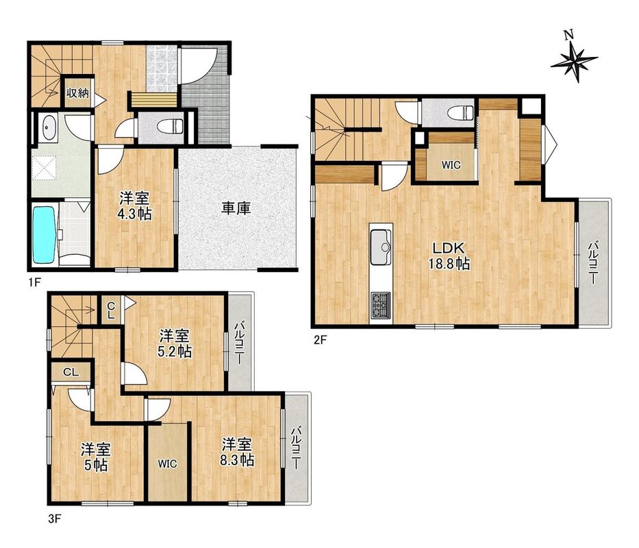 | 間取り | 3LDK+S・4LDK | 建物構造 | 木造3階建て |