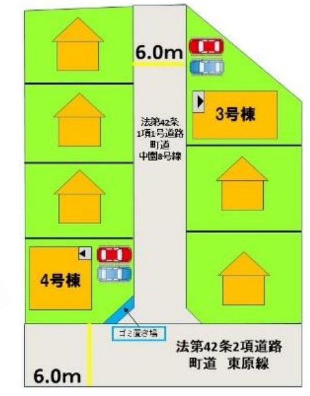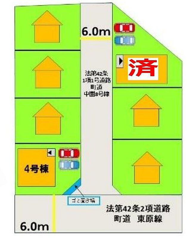 | 駐車場 | - | 道路の幅員 | 道路幅6.0m アスファルト舗装 |
